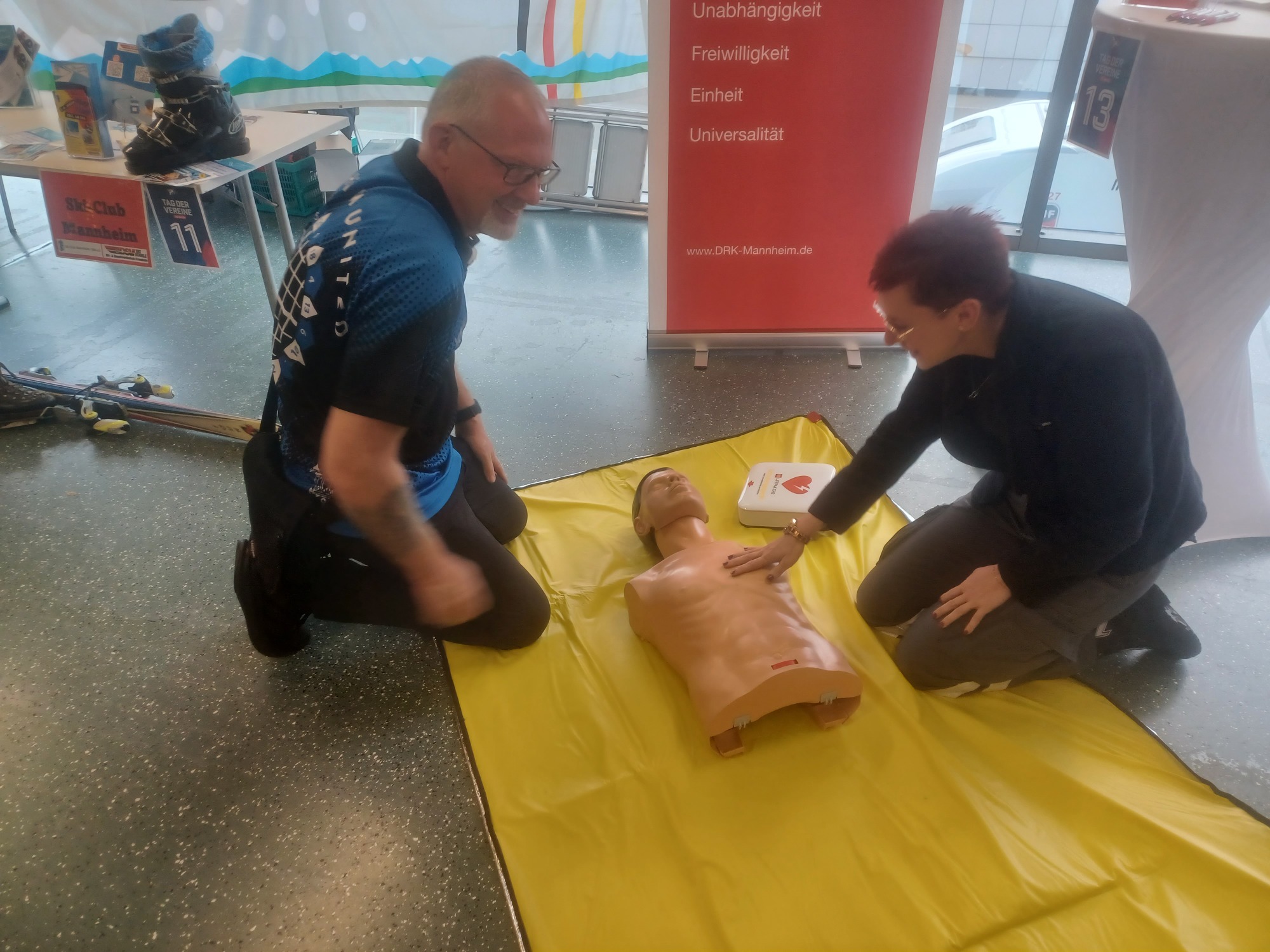 Fabi zeigt den vielen Kids beim Neujahrsempfang, wie man es macht... Flo schaut, wer besonders talentiert ist