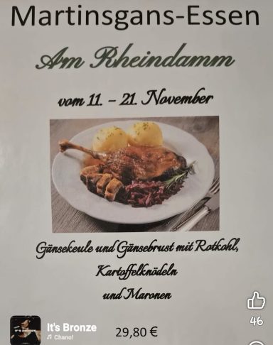 Beim Martinsgansessen im "Am Rheindamm" hat die Gesellschaft gepasst. Wieder hat es geschmeckt und viele neue Ideen wurden ausgebrütet.
